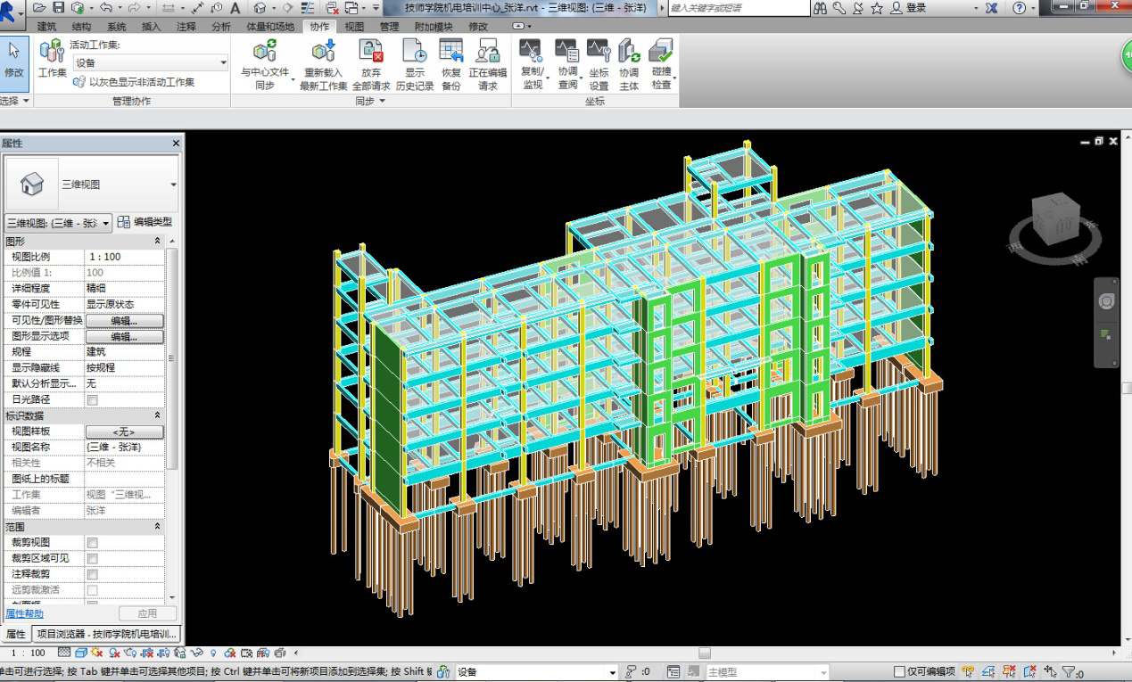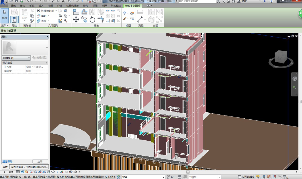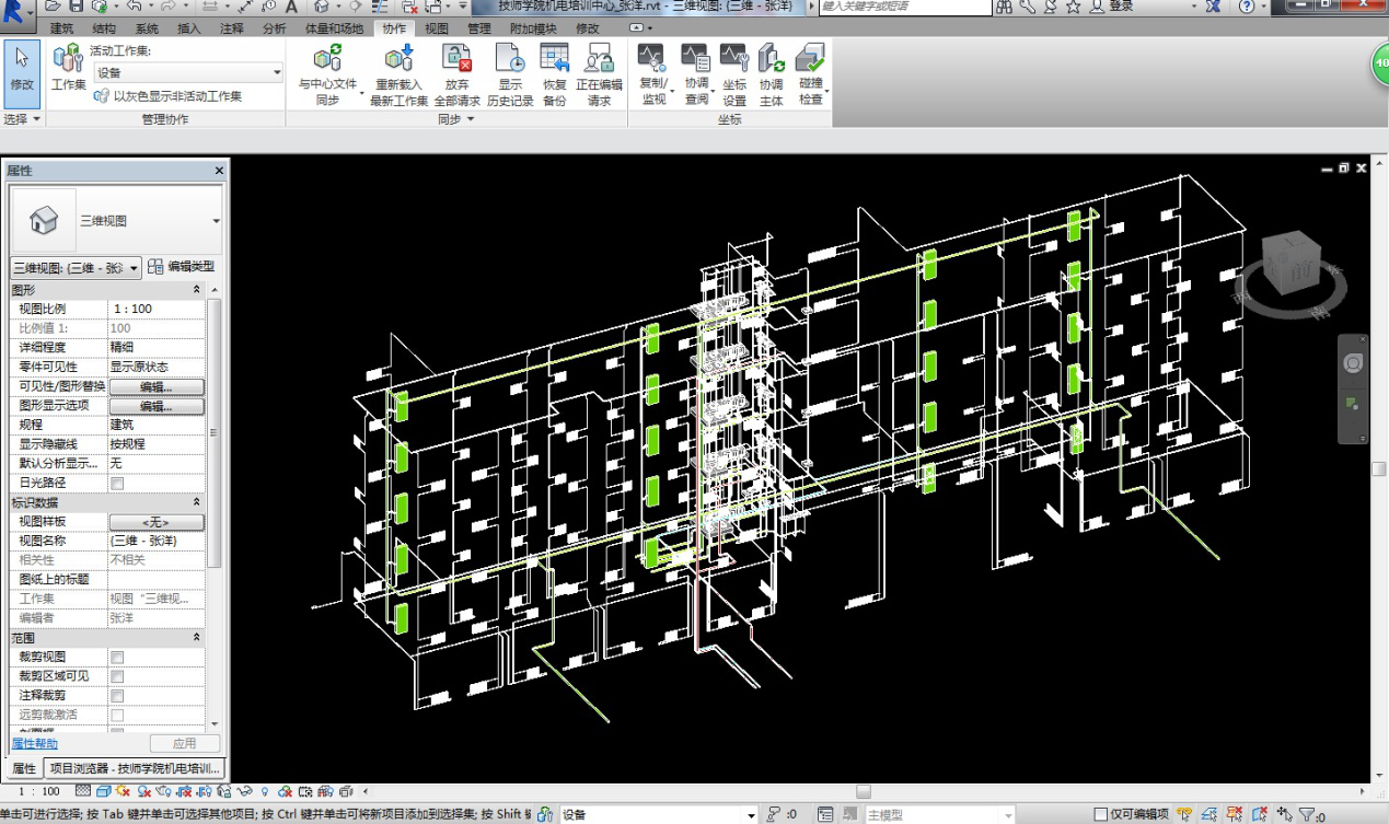 2、 小組成立以來,積極參與各種與BIM相關的學習與活動,整體掌握了Revit設計軟件,為了使小組的學習及研究能真正應用到實際工作和工程中,小組各專業(yè)成員利用業(yè)余時間使用Revit完成了對已出施工圖項目的重新設計。